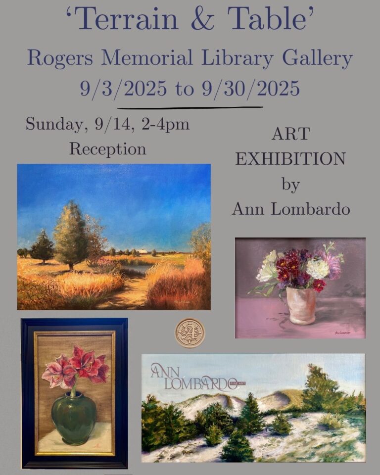 You made my solo show, ‘Terrain & Table’ in September, 2025, a TRULY WONDERFUL experience. This show was at the Rogers Memorial Library in Southampton. THANK YOU.